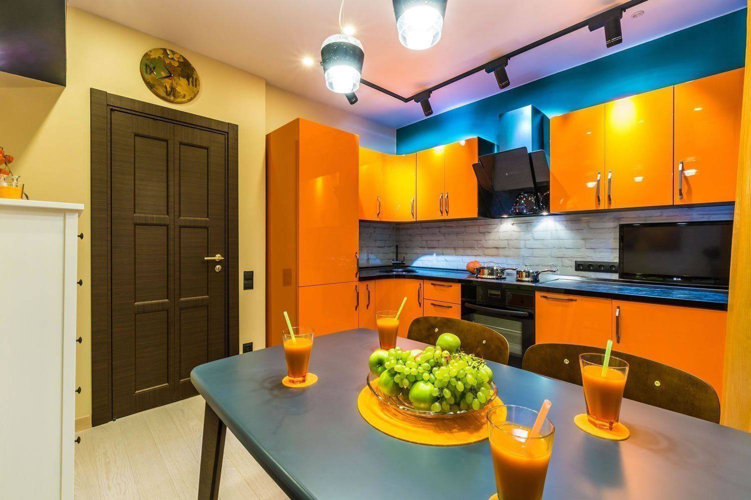 Сочный, насыщенный апельсиновый цвет оживит вашу кухню и придаст ей новый, свежий вид. Энергия, которая исходит от него, положительно повлияет на хорошее настроение, делая приготовление ежедневных блюд намного приятнее