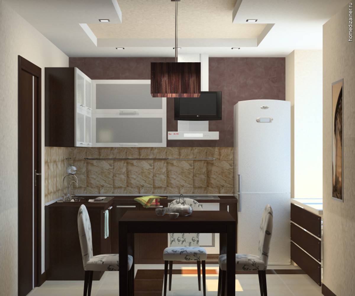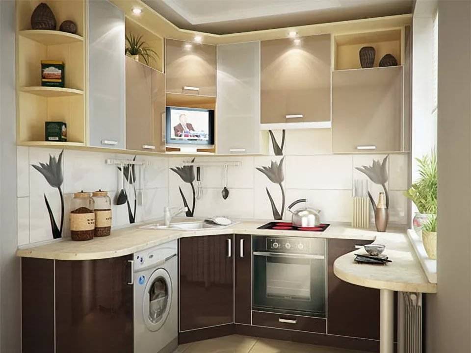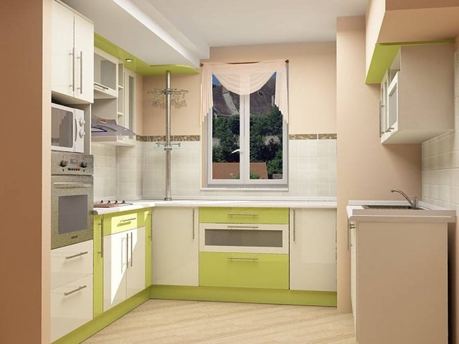 Существует несколько способов расположения основного набора мебели в маленькой кухне: