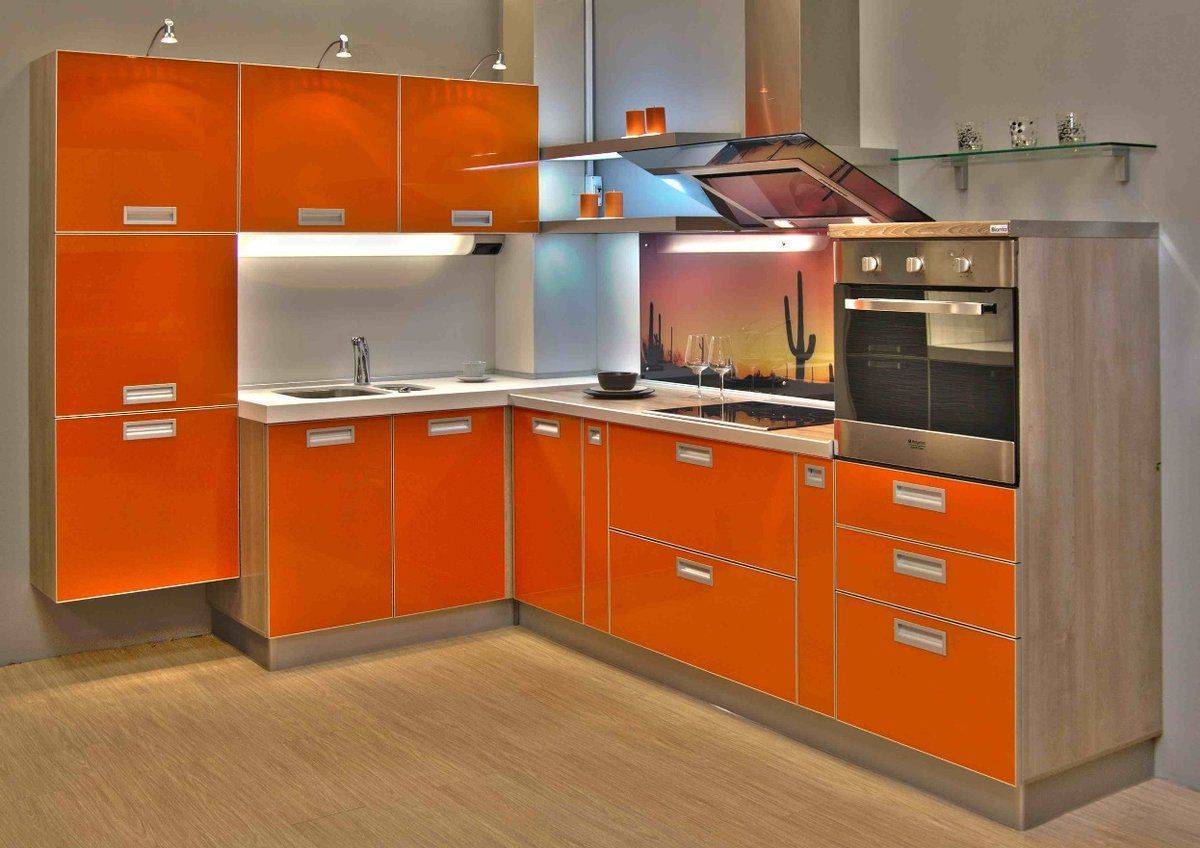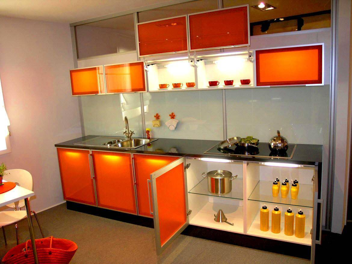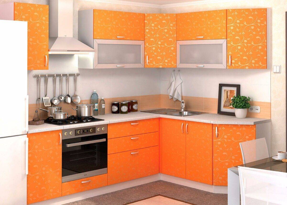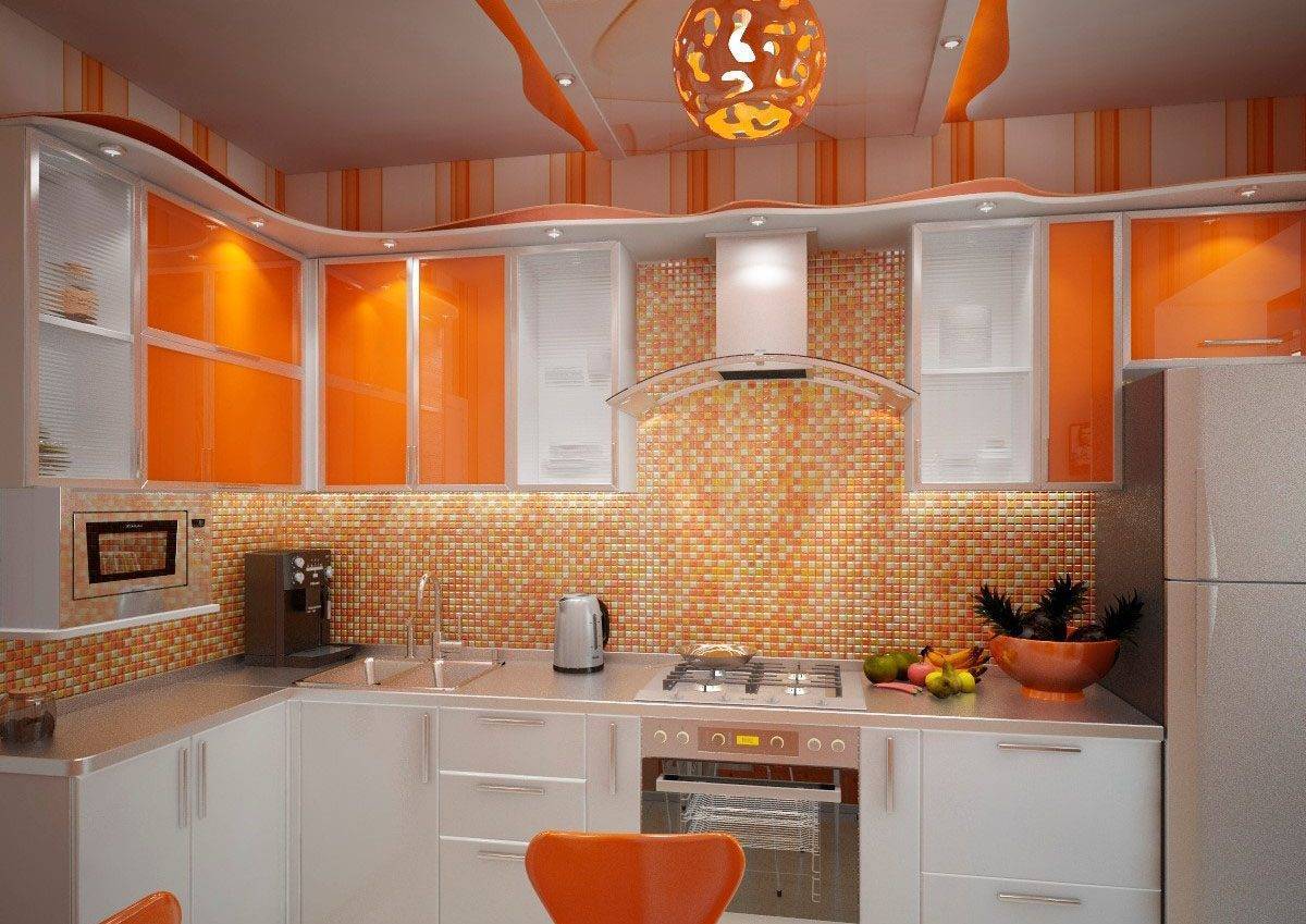 Яркая солнечная палитра красок способна визуально изменить восприятие предметов и помещения, приближая насыщенные элементы. Гарнитур с оранжевыми фасадами кажется ближе, чем он расположен на самом деле. Для зрительного увеличения помещения следует отдать предпочтение персиковым тонам