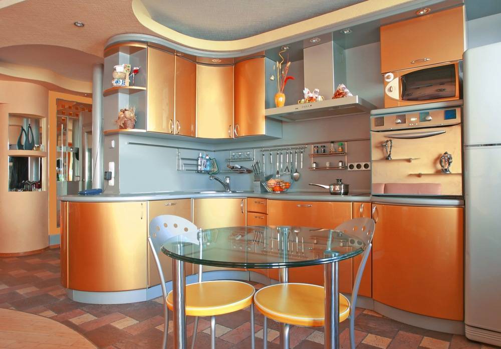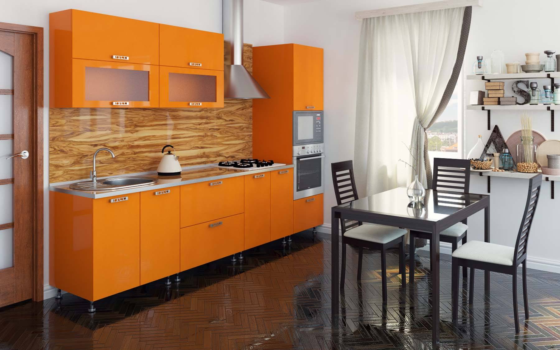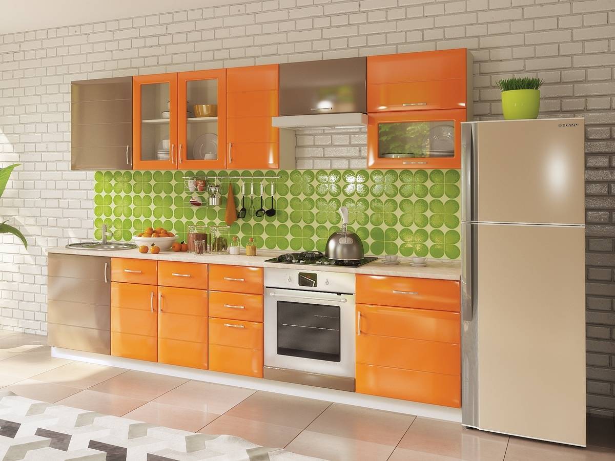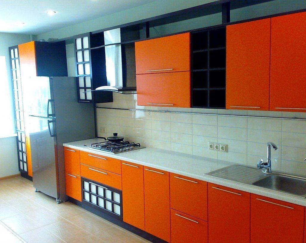 Информация: лучше всего кухонный гарнитур оранжевого цвета будет смотреться на кухне в стиле хай-тек.