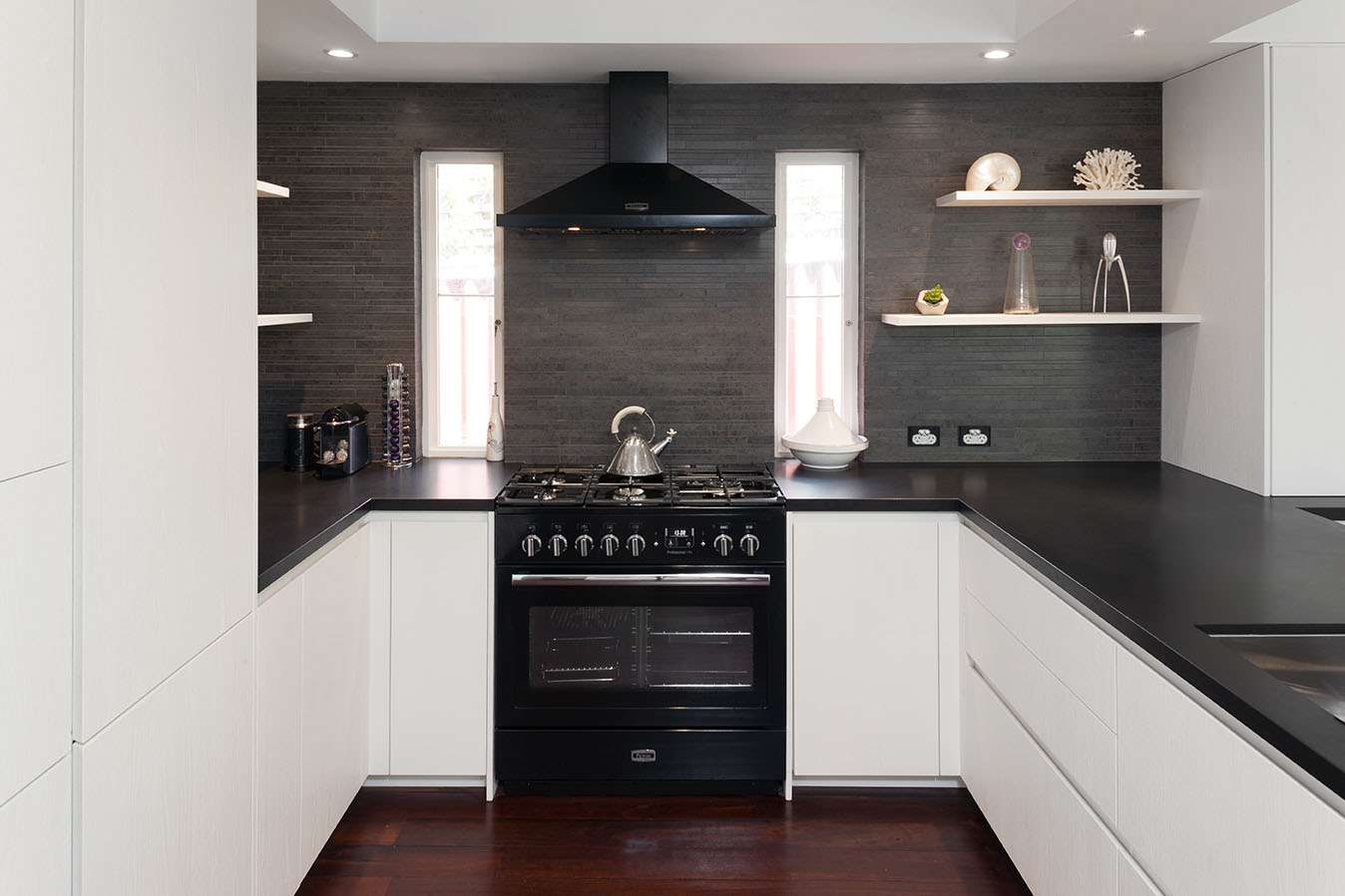 В отдельных случаях применяется П-образный дизайн, когда для расстановки используется три стены. На такой кухне удобно работать, но в условиях маленькой площади сложно разместить необходимые коммуникации.