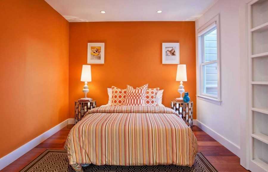 Для небольших помещений следует выбирать светло-оранжевый оттенок. Чем ярче или темнее цвет стен, тем меньше кажется площадь.
