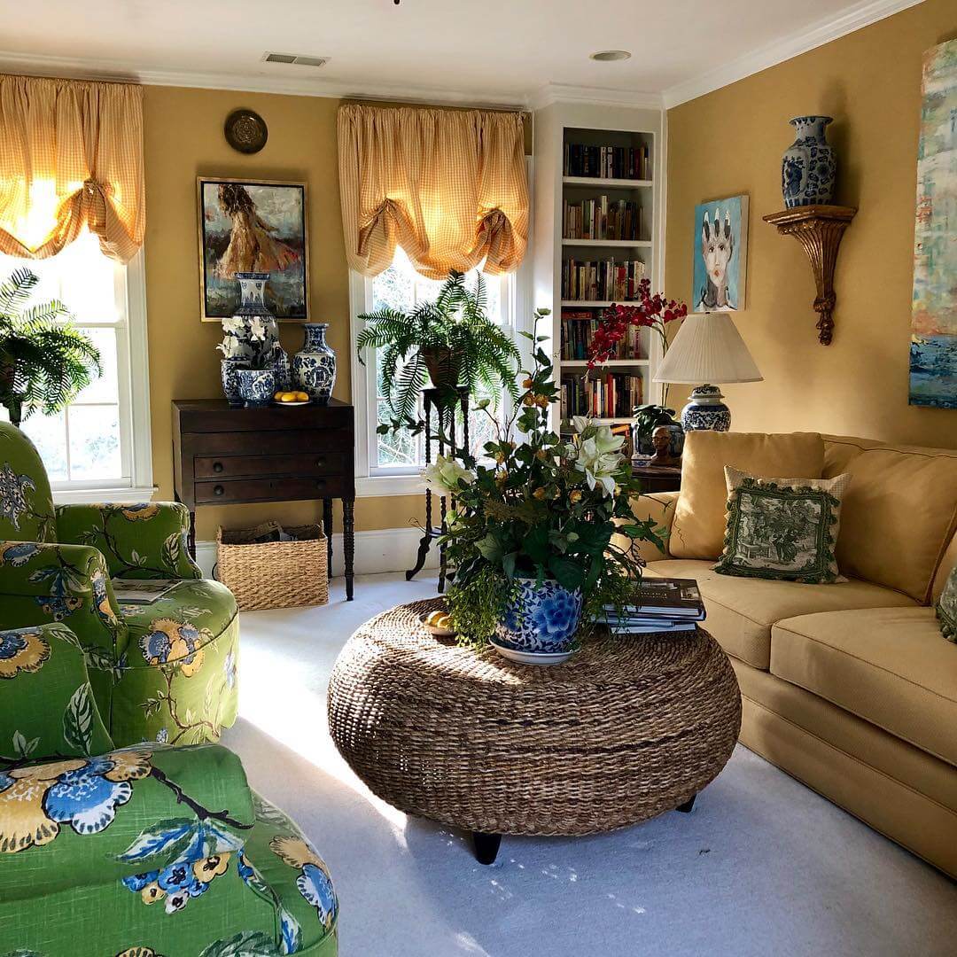 Желтый во всех его проявлениях как нигде будет уместен в гостиной – его энергия будет способствовать общению и позитиву. Действуя по принципу «не навреди», лучше выбирать умеренные оттенки – горчичный или песочный. В этом случае сочетание желтого в интерьере с другими пастельными цветами даст необходимый уют и гармонию классических стилей.