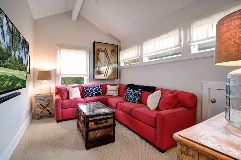 Важно не использовать его в доминирующем варианте. Обычно ярко оформляют одну акцентную стену или какой-то определенный участок, чтобы подчеркнуть его функциональность