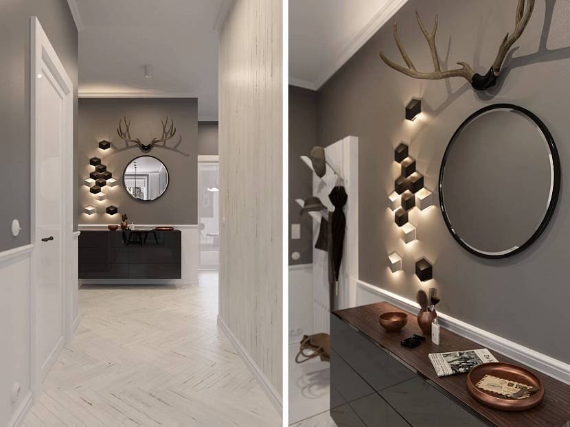 Черный в сочетании с серебряным в стильном решении оформления коридораИсточник vatikam.com