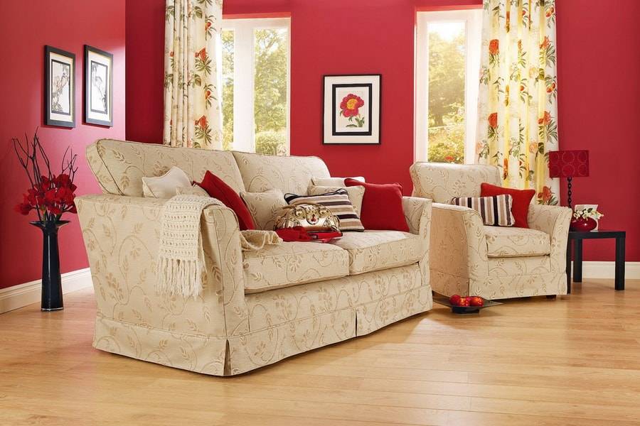 Удачным и красивым получится интерьер, решенный в различных оттенках красного в сочетании деталями золотистых тонов, так как сочетание золота с красным всегда отождествляется с мощью, красотой и властью. Если же вы ценитель сдержанной роскоши, то в этом случае без красного цвета вам не обойтись. Даже один красный диван или люстра красного цвета способны добавить гостиной шика и создать в ней атмосферу гламурной вечеринки.