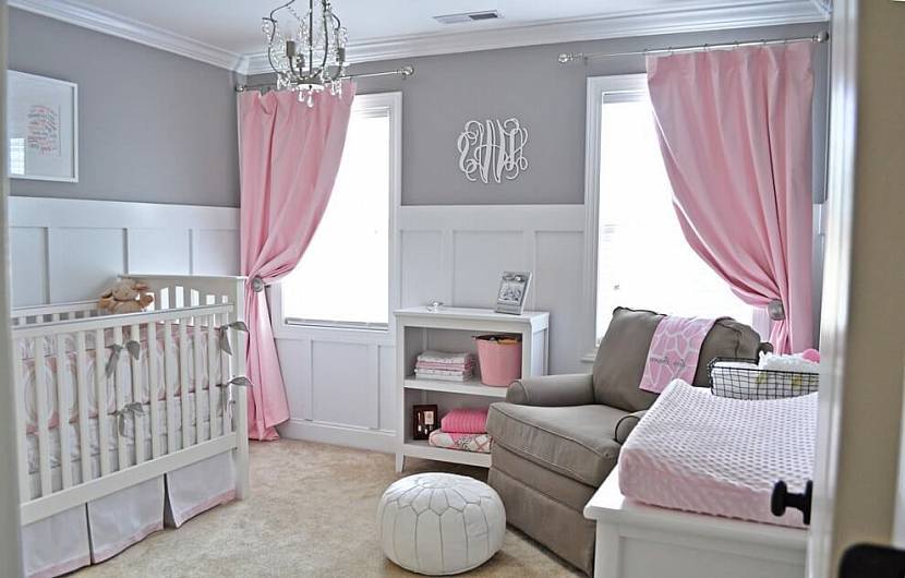 Детская в нежных тонах серого и розовогоИсточник yandex.ru