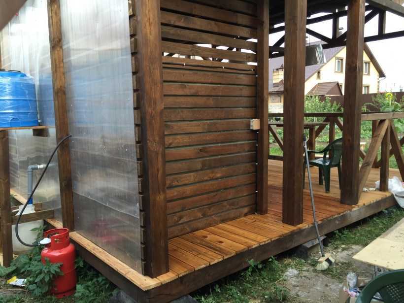 - Если за основу строительства взято дерево, его надлежит обработать влагоотталкивающей пропиткой.