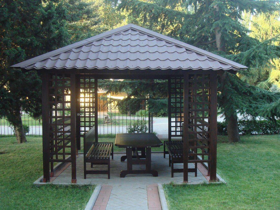 Чаще всего беседки покрываются четырехскатными кровельными конструкциями: вальмовыми и шатровыми. Но если строение небольших размеров, то устанавливают и двускатные. Если сооружается открытая модель, то нередко используют односкатные легкие крыши.