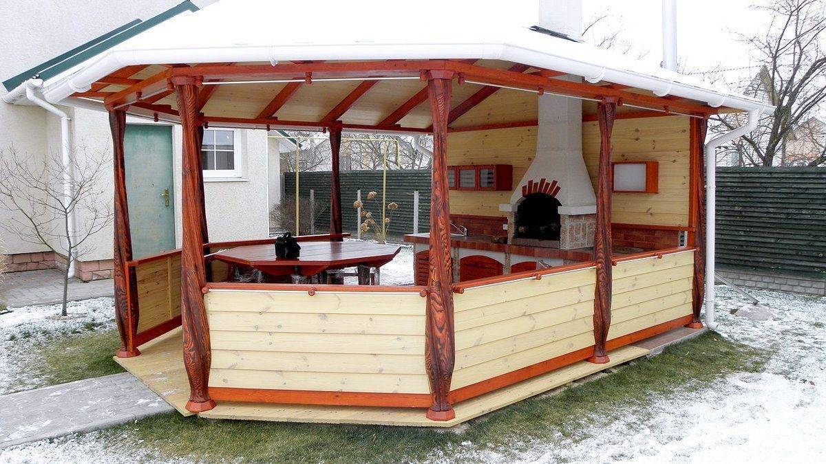 Идеальным материалом для беседки с печкой (камином, мангалом) станет кирпич или камень: крепкий, не горит и не сильно коптится.Источник yandex.ru