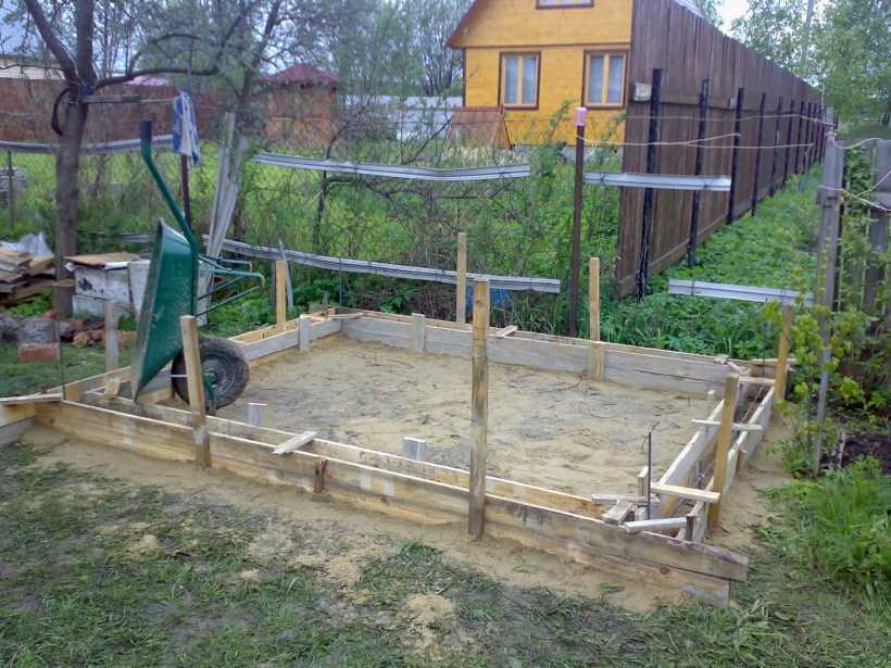 - или на всю площадь беседки возвести плиту, толщиной от 12-20 см. Предварительно подготовив периметр и утрамбовав песок. В одной из прошлых статей, давался хороший пример плиточного основания для беседки…
