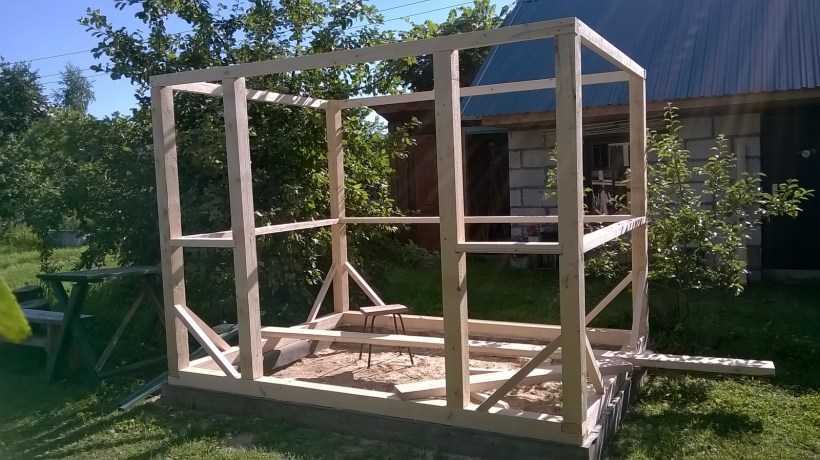 Опорные стойки надлежит сооружать из бруса с достаточным сечением, кирпича либо металлического профиля.