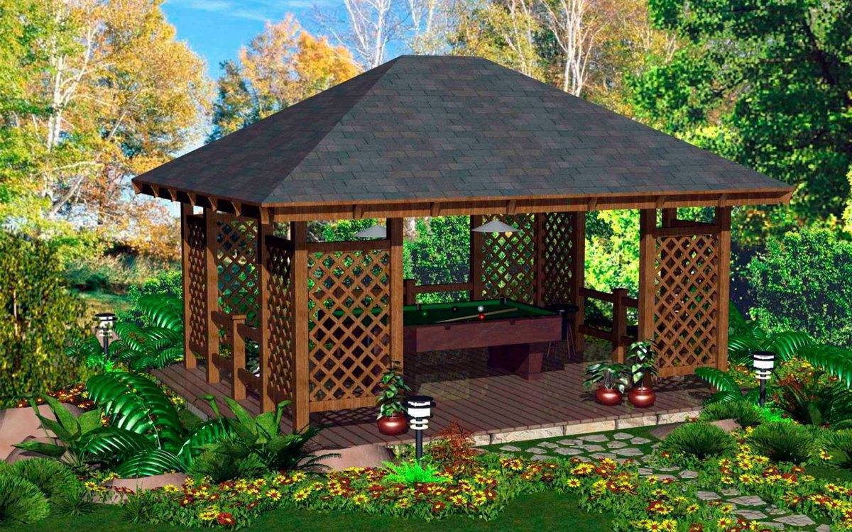 Вообще, в этом плане нет особых ограничений. Как уже говорилось выше, беседка из дерева должна четко вписаться в стилевое оформление основного загородного дома. Хотя и эти правила нередко нарушаются. Поэтому на приусадебных участках строят беседки с крышами в виде пагод, хотя дом построен в классическом стиле. Или в русском стилевом направлении с витиеватыми узорами. Большой популярностью пользуются крыши викторианского (шестискатные) направления, средиземноморского – это кровли из стропил, но без кровельного покрытия. То есть вариантов настолько много, что выбрать есть из чего.