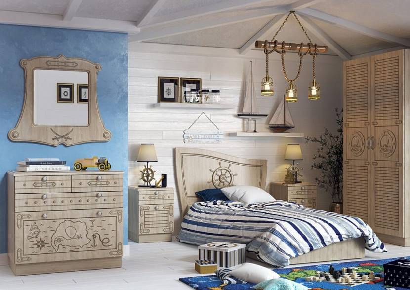 Лето – это период отпуска, отдыха, поездок на море. Поэтому применение морской тематики в летнем интерьере вполне оправдано. На стене можно сделать панно с изображением моря, использовать декоративную веревку, например, сделать из нее подставки для чашек или тарелок.