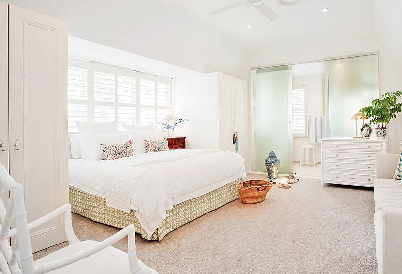 Уютную атмосферу в комнате создает правильно подобранная оттеночная палитра. Белое оформление стен гармонично сочетается с любой цветовой гаммой мебельных фасадов и текстиля. Смягчить холодность базового тона помогут более теплые варианты слоновой кости или молочный.