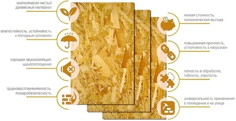 Как и любой другой строительный материал, плиты OSB обладают своими достоинствами и недостатками. Поэтому прежде всего ознакомимся с их эксплуатационными качествами.