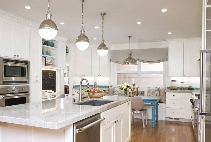 Любая кухня, независимо от размеров, имеет две зоны: рабочую и обеденную. Освещаются они по-разному.
