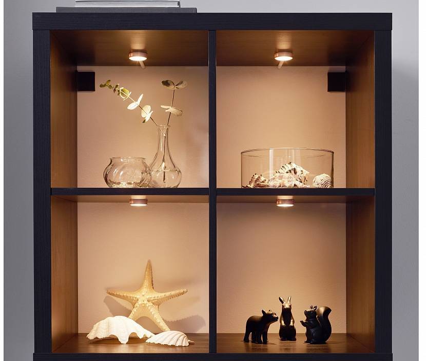 Мебельные. Врезные и накладные точечные модели помогают осветить мебельные фасады, рабочие поверхности, а также внутреннее пространство полок и ящиков.