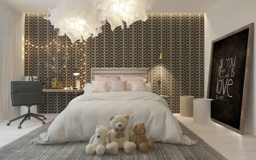 - Освещение в детской нужно подстраивать под возрастные потребности ребенка. Если для новорожденного достаточно центральной люстры и ночного светильника. То, к примеру, для подростка, люстра уже не так важна. Рациональнее использовать прикроватный светильник на кронштейне, торшер, настольную лампу.