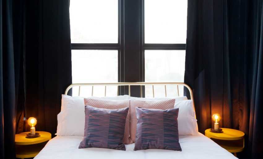 В случае если кровать не оснащена подсветкой с датчиком движения, то будет удобно закрепить выключатель рядом с кроватью, чтобы можно было включить и выключить свет не вставая. Для этого применяется совокупность так называемых проходных и перекрёстных выключателей. Один расположен у двери, еще два – в изголовье кроватей. Но каждый в совершенно равной степени может включить и выключить общее освещение.