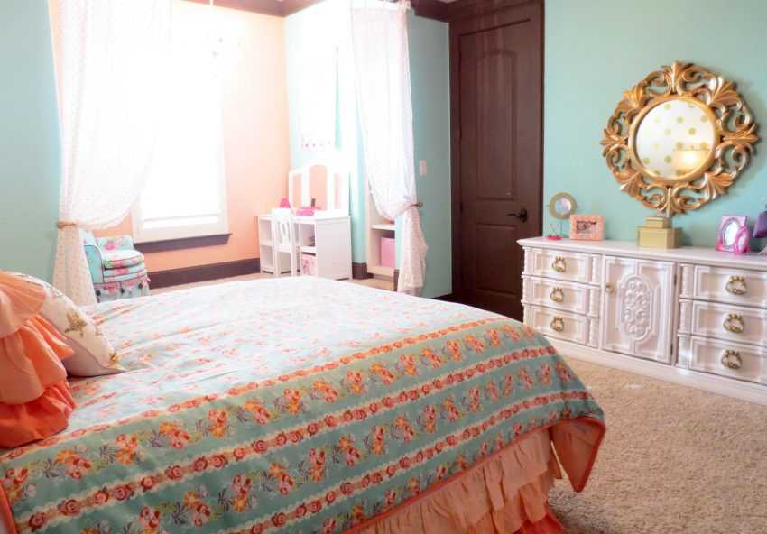 В стиле прованс. Романтичный интерьер в пастельных и природных тонах с простой светлой мебелью (стильный прием — выкрасить ее в белый цвет). Поощряется использование мелкого цветочного принта в текстиле, шторах, обоях. Стоит избегать большого количества оборок и рюшей в них спальня утонет.