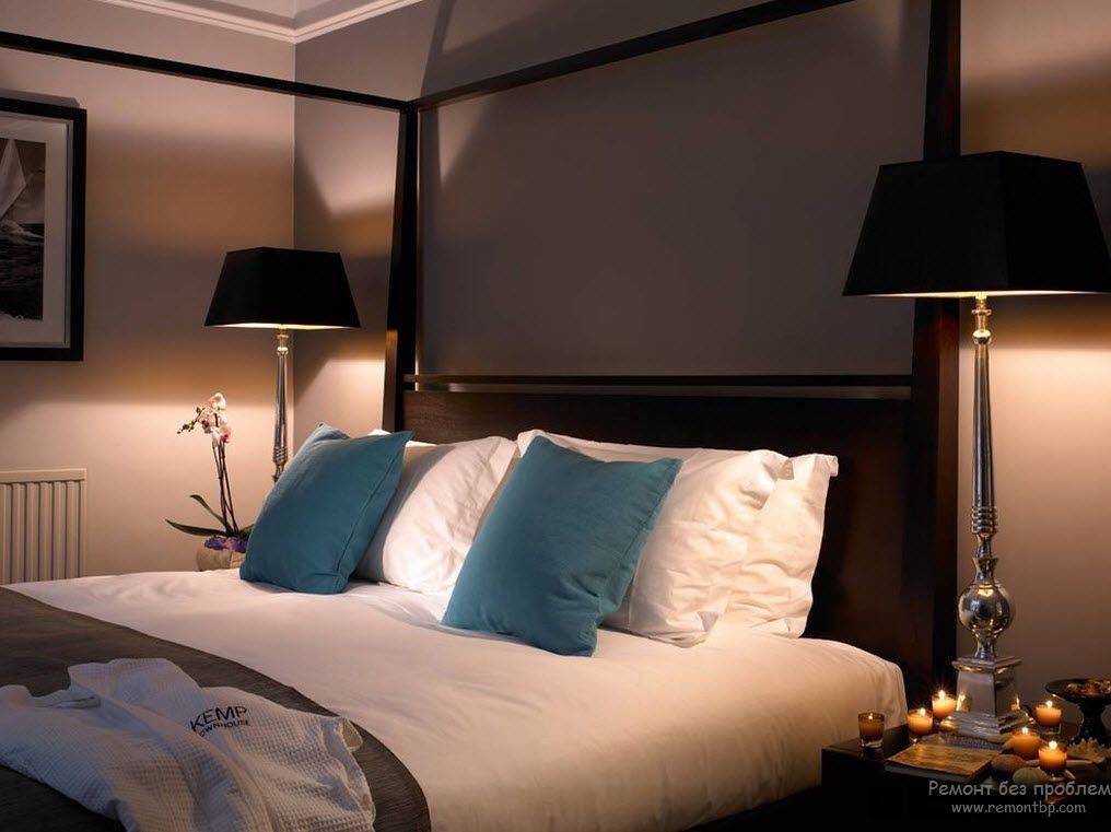 Так как спальня — это место для физического и умственного расслабления, то все приборы освещения в ней должны иметь спокойные тона. Желательно отказаться от громоздких хрустальных конструкций, которые больше подходят для гостиной. При наличии нескольких устройств стоит подбирать их в одном стиле оформления.