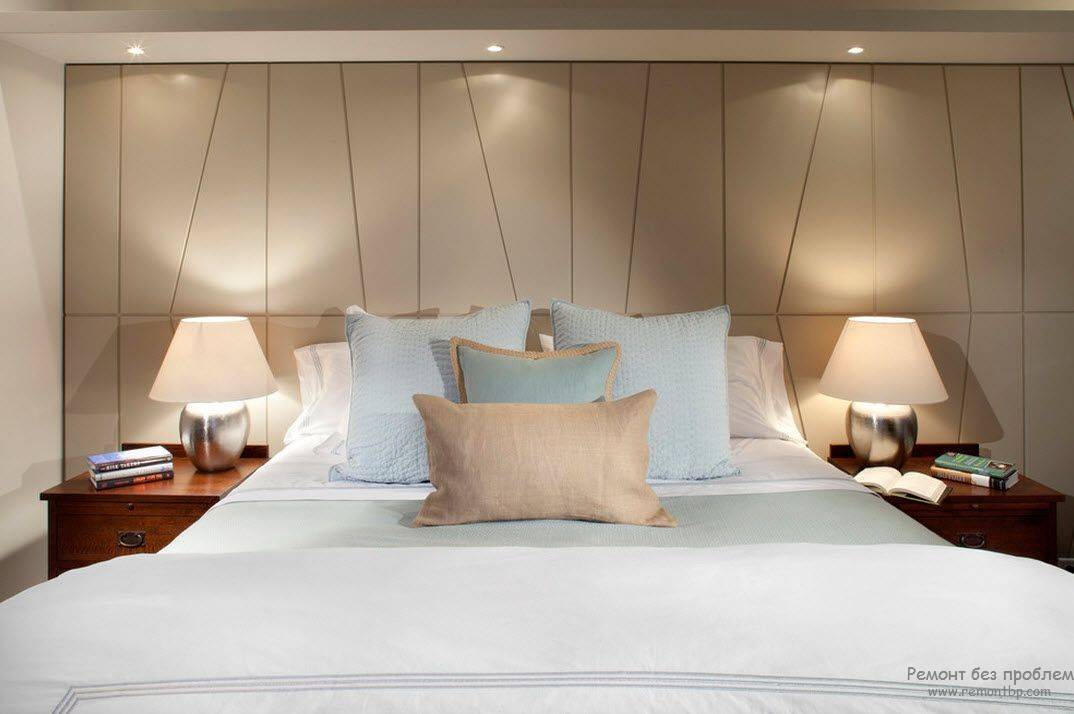 На фото установленные в изголовье бра, которые гармонично вписались в нежный интерьер.