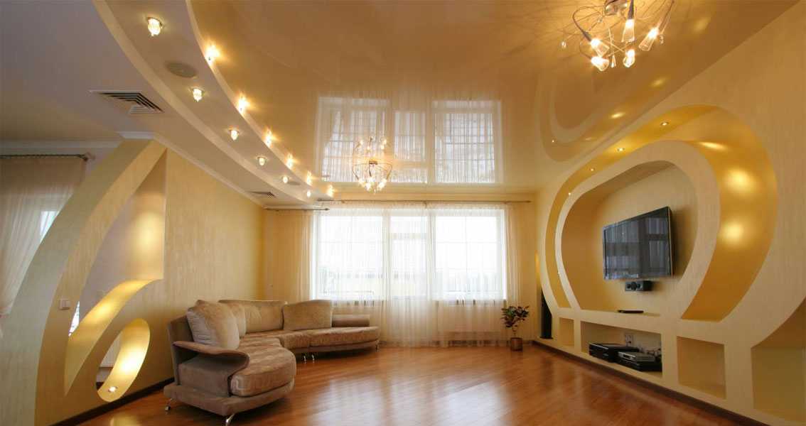 Это разнообразные люстры, светильники, встраиваемые или накладные. Подходят для больших комнат, иначе будут визуально уменьшать пространство.