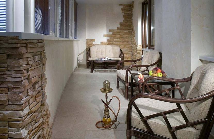Вариант оформления лоджии декоративным камнем