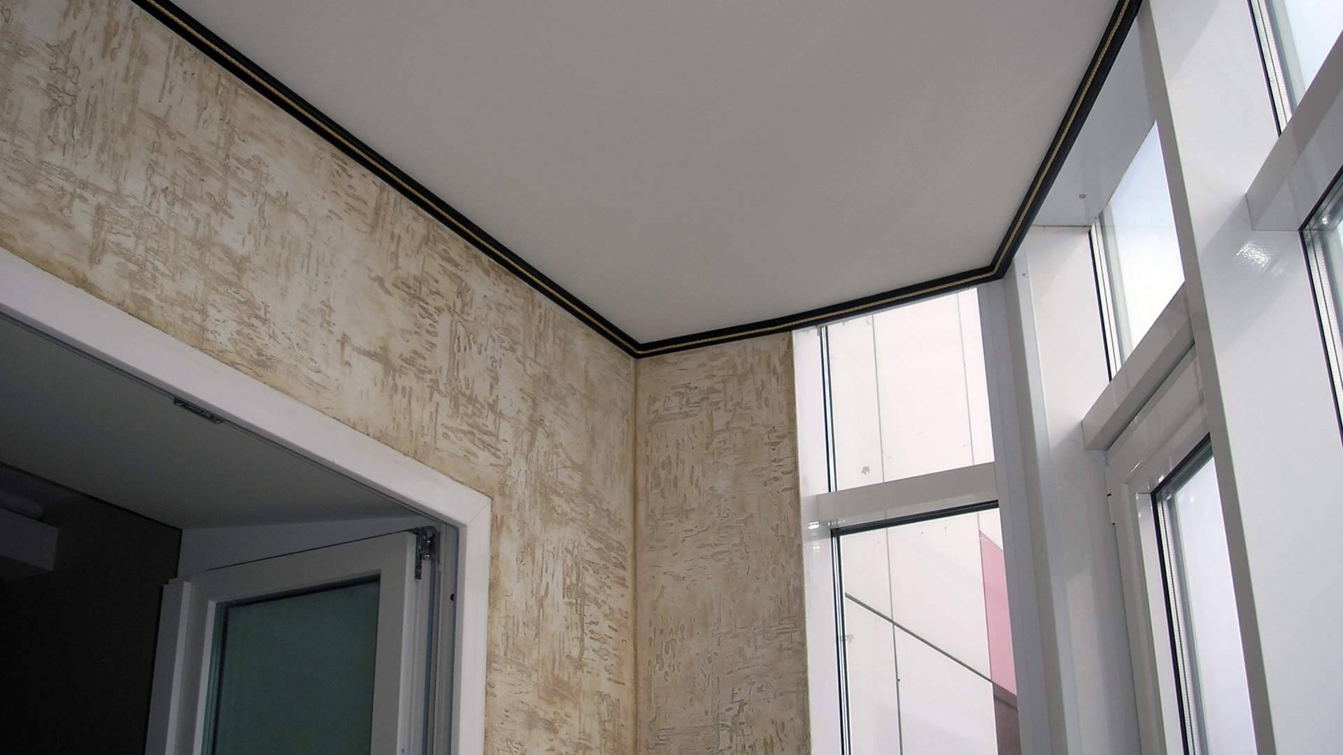 Одним из самых распространенных вариантов отделки балконного потолка является устройство одноуровневого подвесного потолка из МДФ.