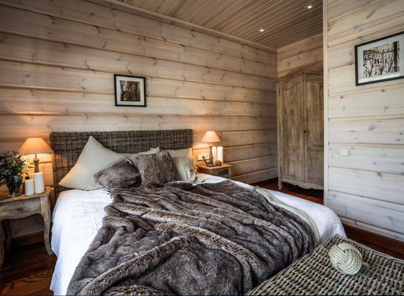 Деревянные дома из бревен часто отделывают вагонкой Блок-Хаус. Полукруглая поверхность имитирует бревенчатую кладку стен и хорошо вписывается в общий дизайн интерьера.
