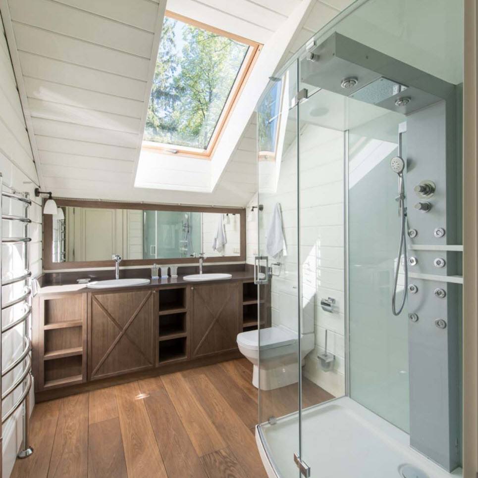 При создании внутреннего интерьера нужно это учитывать и все работы по обустройству на это ориентировать. Поэтому нет уверенности, что все детали городской цивилизации органично впишутся в загородный интерьер и будут прекрасно выглядеть на фоне деревянных стен.