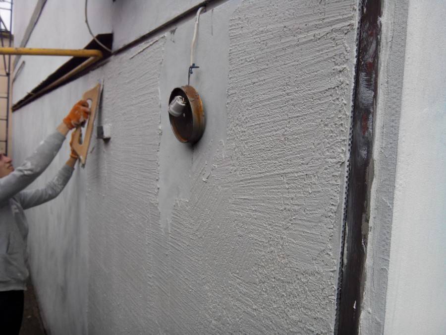 При нанесении декоративного покрытия на слой пенопласта или иного наружного утеплителя используется технология промежуточного покрытия. Она включает в себя предварительное нанесение слоя клея для плитки на поверхность утеплителя, установку монтажной сетки — армирование, выравнивание подготовительного слоя еще одним клеевым слоем.
