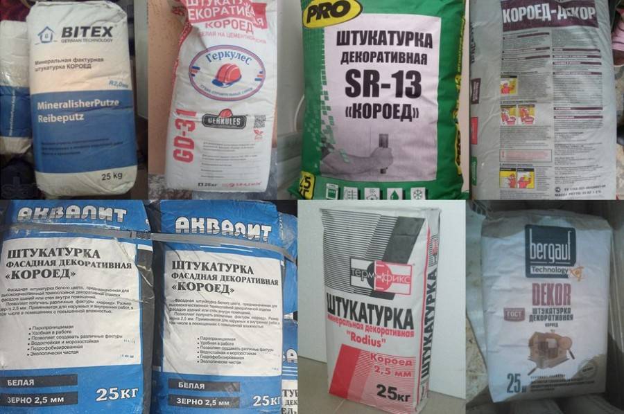 Штукатурку короед изготавливают на основе акриловой и цементной смеси с добавлением мраморной крошки. Благодаря крошке различного размера добиваются необходимой фактуры и рисунка готовой поверхности. Чем крупнее фракция зерна, тем глубже борозды рисунка.
