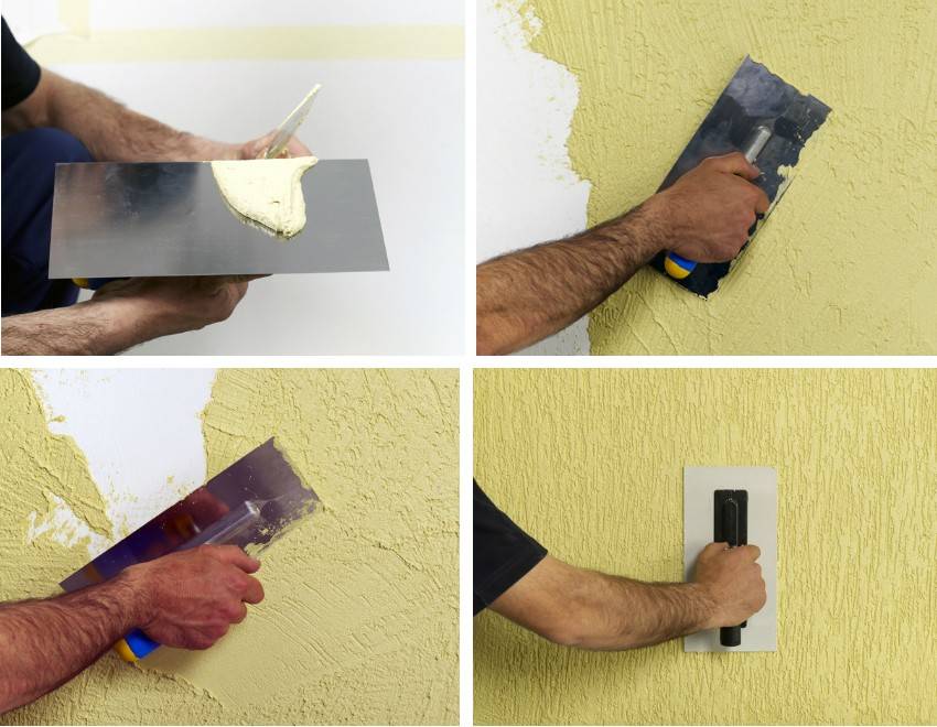 Сам процесс переноса смеси на поверхность не отличается от других видов декоративных растворов: