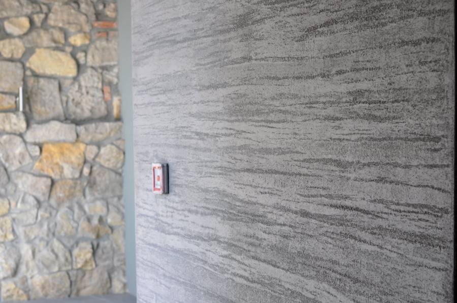 Фактурная штукатурка по своему внешнему виду напоминает камень, поэтому дизайнеры применяют её в тех стилях где каменные материалы обязательны.