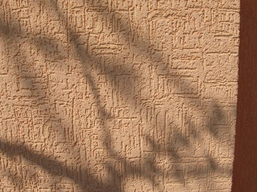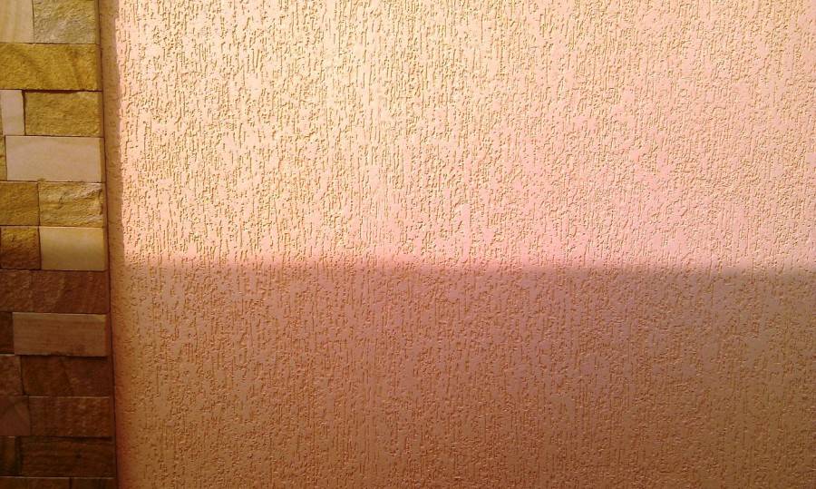 1. Для осуществления задуманного, берётся цветная штукатурка с оттеком более тёмным, чем предполагается использовать для дальнейшего покрытия. Первый слой наносится на стену, после чего материалу следует дать подсохнуть.