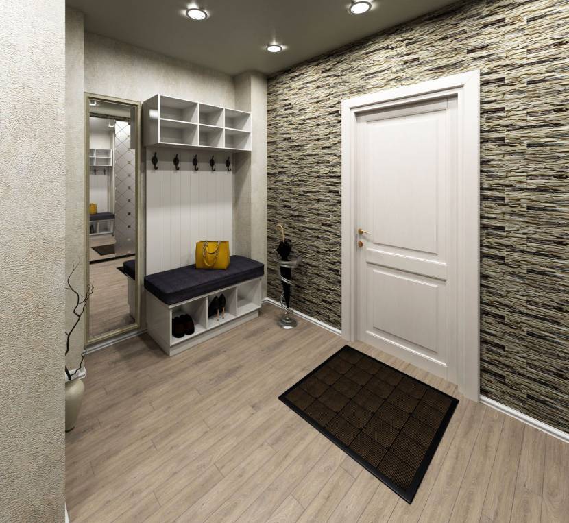 Такой вариант может имитировать кирпичную кладку или натуральный камень. Поэтому его можно подобрать для любой по стилистическому оформлению прихожей. Лучше всего подбирать не сильно маркую и не глянцевую плитку. Такой вариант отделки хорош тем, что за данными поверхностями довольно легко ухаживать. К тому же производители представляют широкое разнообразие моделей для отделки.