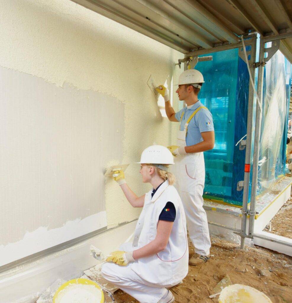 - Стена должна быть хотя бы относительно ровной. Большие углубления и выступа будут означать, что фасад легко продавится при нажатии. При необходимости углубления заполняются штукатуркой, выступы сбиваются.