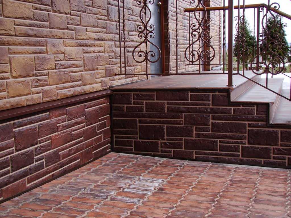 Отделка фундамента дома (фото смотрите ниже) таким материалом позволяет получить поверхность, внешне практически не отличающуюся от облицованной натуральным или искусственным камнем. Преимущества данного способа:
