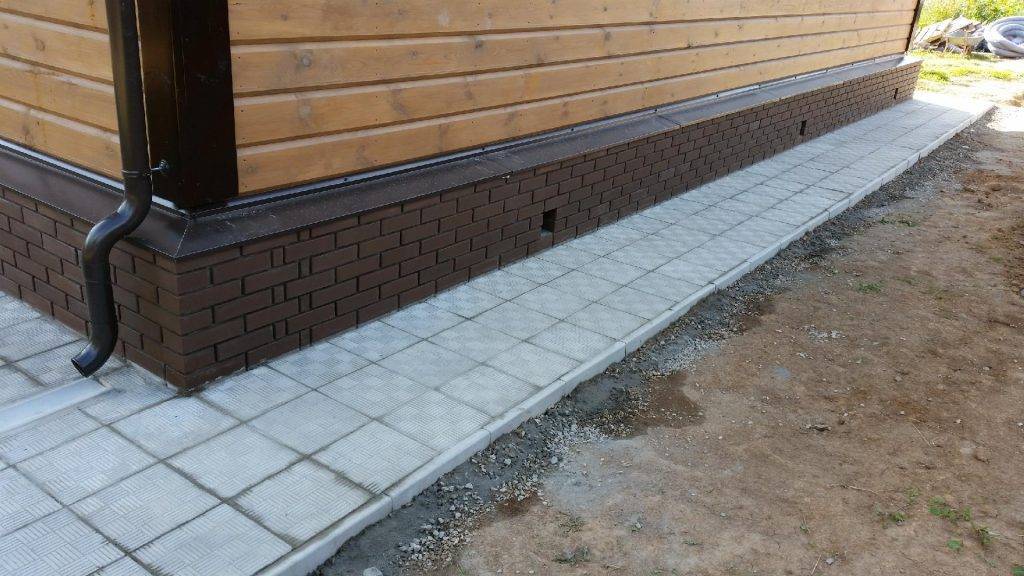 - Выступающий – требует организации системы слива талой воды и дождя. Конструкция обеспечивает теплоизоляцию, герметичность фундамента, обладает декоративными характеристиками.
