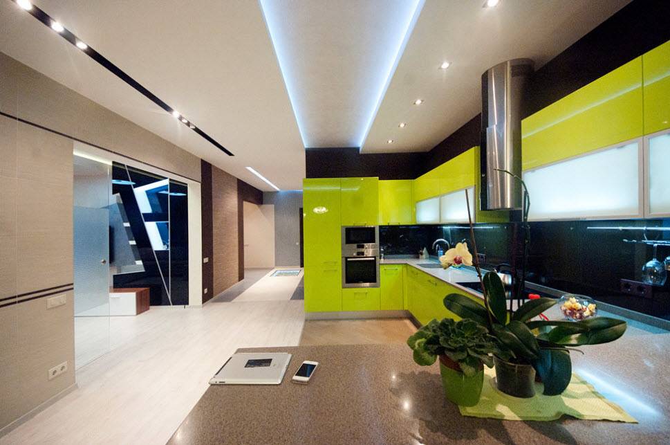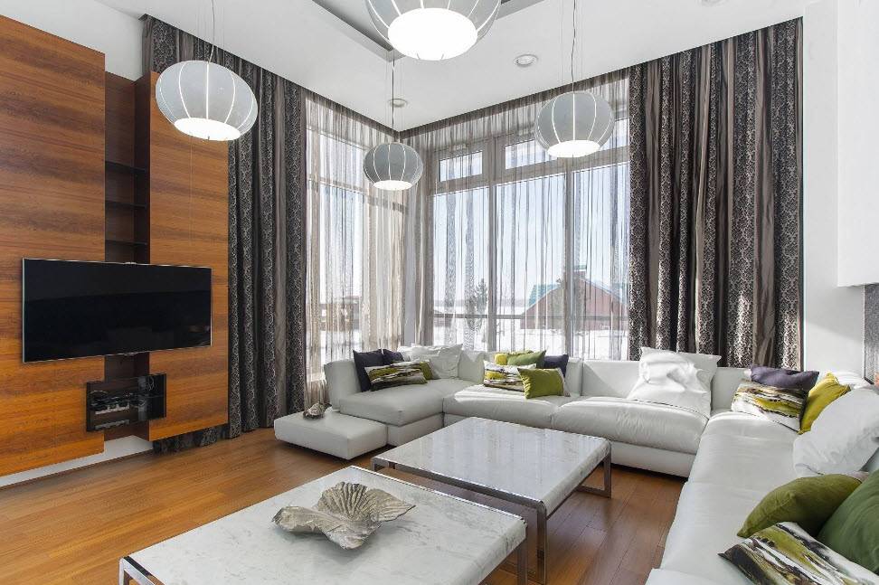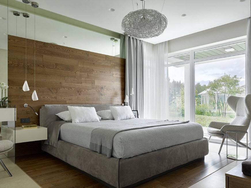 Если в выборе интерьерного решения вы отдали предпочтение хай-теку, важно создать большие поверхности окон, высокие потолки, где деревянные полы, стены, потолки наполнят аскетичную атмосферу натуральным колоритом