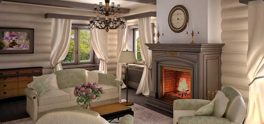 В гостиной в деревенском стиле должна присутствовать простота и натуральные материалы. Древесина может быть ведущим элементом, поэтому стоит разместить деревянные полы, мебель и даже стеновые панели. Кроме того, можно уложить шерстяные одеяла, льняные скатерти и кожаные коврики. Плед или шторы в клетку, а также кружева будут выглядеть хорошо. Замечательная идея — камин, который принесет теплые, дружественные ноты в интерьер.