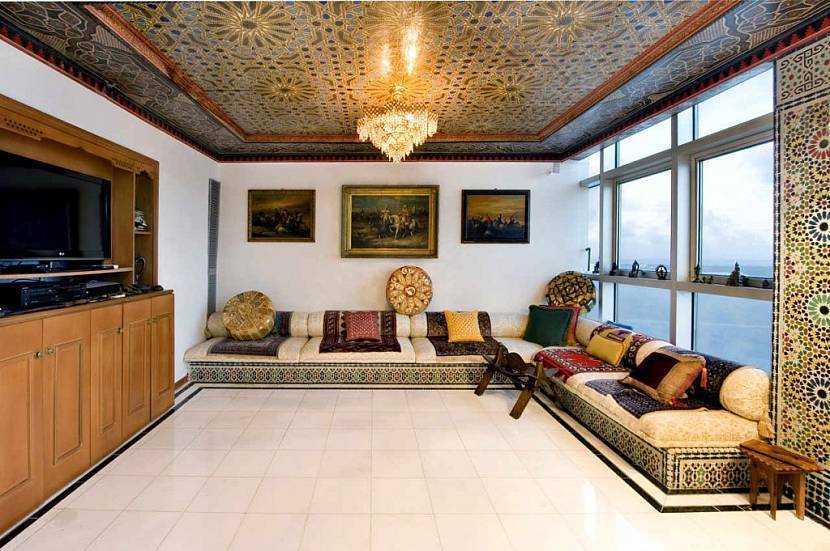 Арабский стиль прекрасен своей насыщенностью и восточным характером. Он подходит тем, кто любит максимально наполнять свой интерьер мебелью, декорациями, орнаментом.