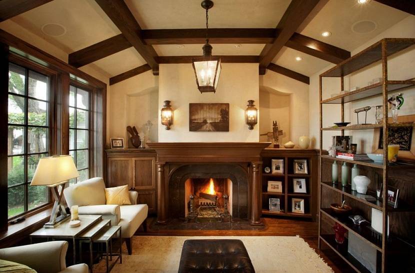 Интерьер с использованием деревянных элементов, как впрочем, и любой другой, имеет множество совершенно разных решений. В зависимости от возможностей и предпочтений, можно увлечься авторской мебелью и дорогими аксессуарами, а можно использовать природное богатство вокруг дома, дополнить его камином или очагом, отвести место для сухих и ароматных дров.