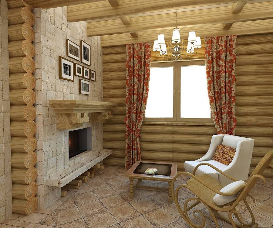 В качестве отделки используется сплошная зашивка, чаще всего – имитацией бревен или бруса. Дубовые панели для стен, панно из дорогостоящих пород древесины, накладная резьба придадут вашему дому особое очарование и индивидуальность. Используя все перечисленное, вы сможете оформить дом в любом задуманном стиле, вплоть до чистого минимализма.