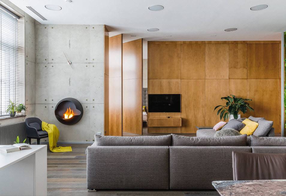 Энергичные движения огня завораживают, притягивают взгляд и дарят неимоверное наслаждение. Эффектный камин в деревянной гостиной является незаменимой атрибутикой домашнего очага и станет любимым местом для проведения досуга.
