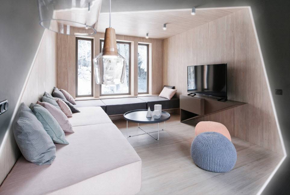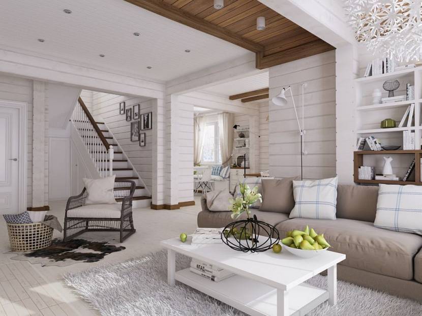 Стили интерьера в холодном скандинавском варианте отделки характеризуются минимализмом, но минимализмом уютным, направленным на подчеркивание всех достоинств деревянного дома. Для этого дизайна не потребуется много времени для подбора элементов декора и антиквариата, картин или старинных светильников.