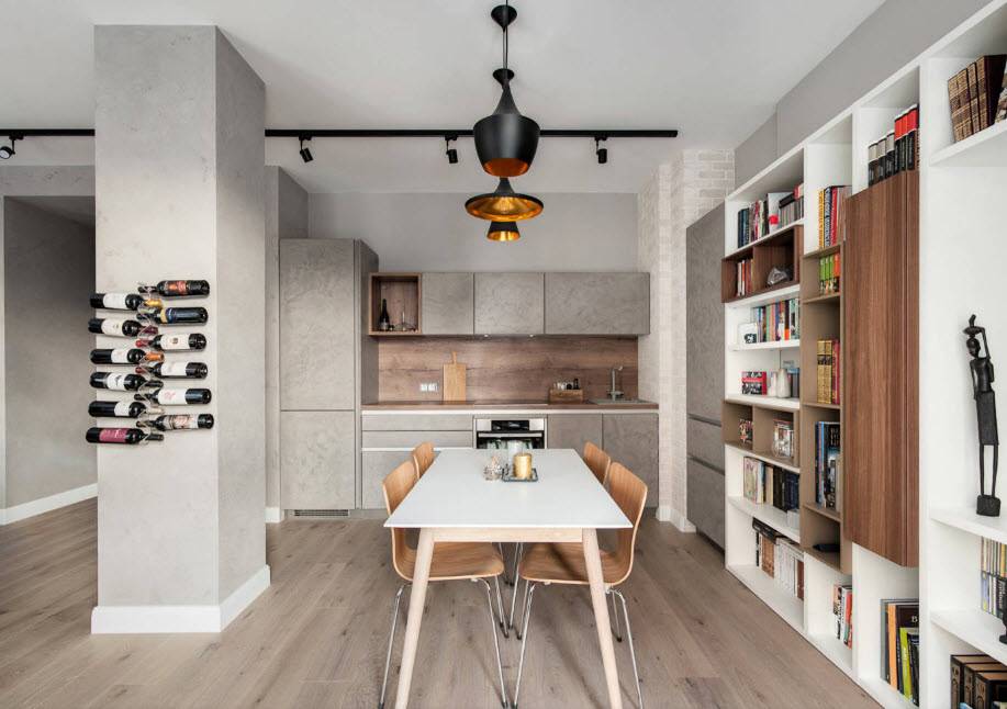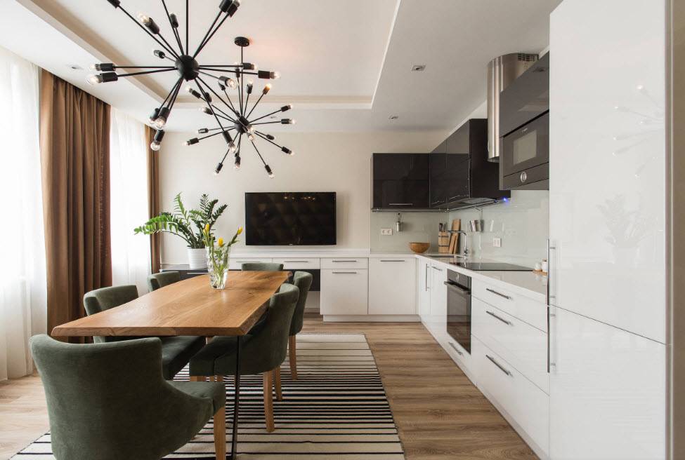 Скандинавский стиль довольно прост и минималистичен, поэтому хорошо сочетается с современными элементами интерьера, такими как бытовая техника, радиаторы отопления и т. д. Для него характерна открытая планировка помещений, большие окна, светлые оттенки отделки и мебели.