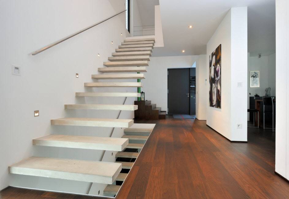 Интерьер загородного дома в современном стиле не богат на цвета, так как здесь царит геометрия, строгие формы. Для оформления внутреннего пространства используется спокойная цветовая гамма с минимальным количеством оттенков. В цветовой палитре чаще всего встречаются черный, серый, белый и бежевый цвета. В качестве дополнения можно выбрать необычный многосоставный оттенок.